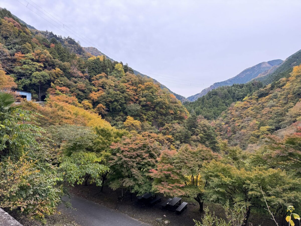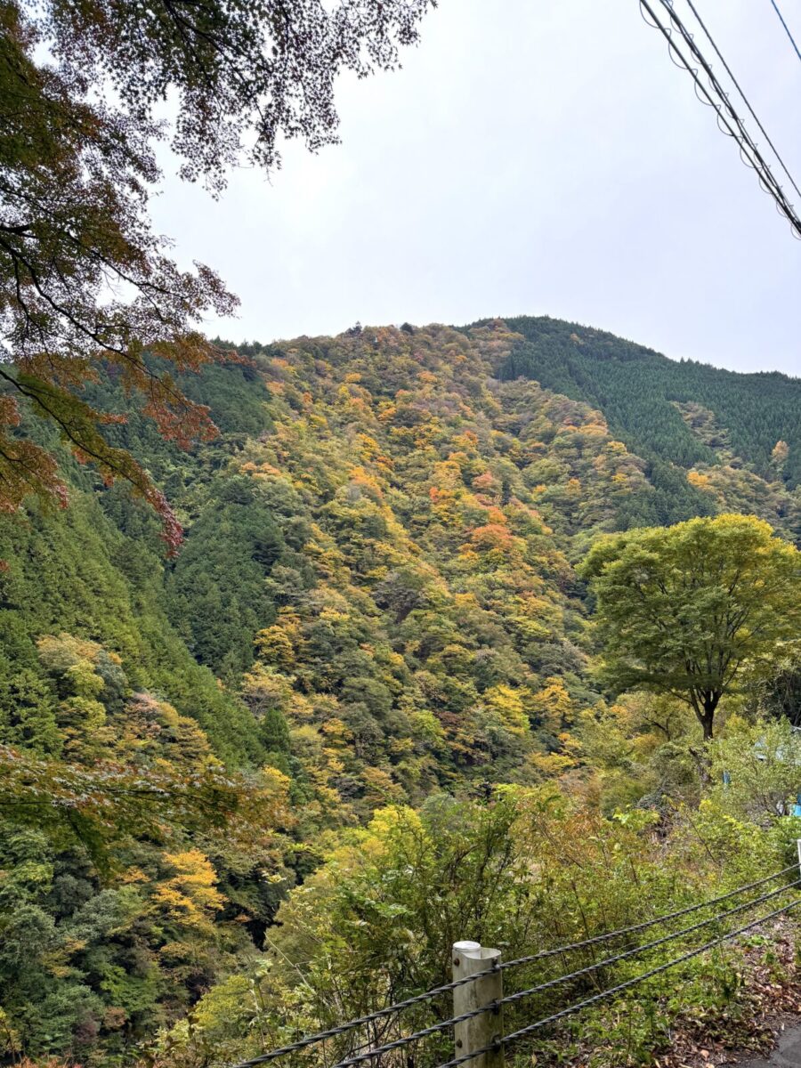 奥多摩の紅葉シーズンが始まりました。奥多摩むかし道などの渓谷沿いや山々は徐々に色づいてきています。